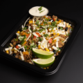Grass-fed beef, cilantro lime rice, black beans, peppers, corn, cheddar, and smoky spices, paired with creamy jalapeño sauce.