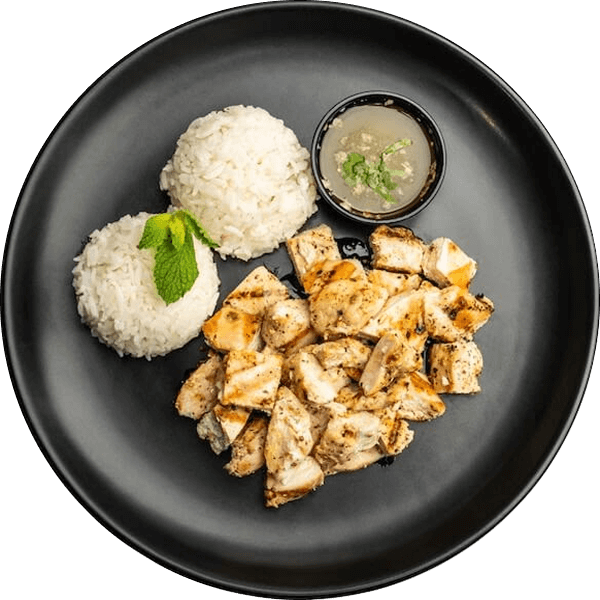 An elevated classic. Grilled free-range chicken breast with jasmine rice and a side of homemade lemon herb olive oil. Extra Virgin Olive Oil imported from Greece