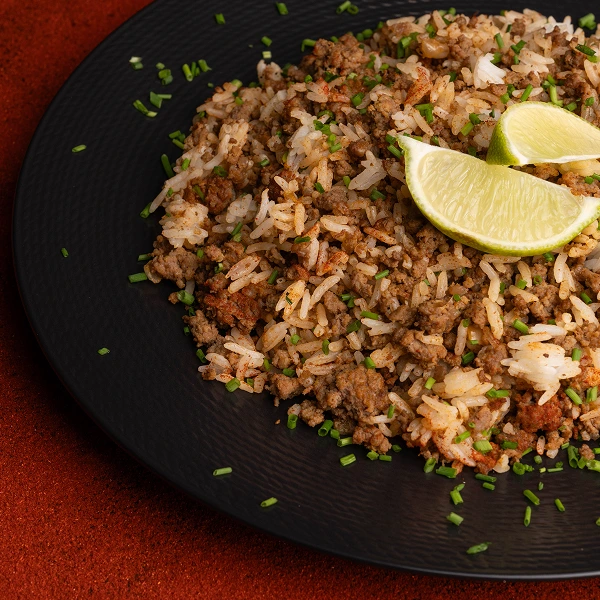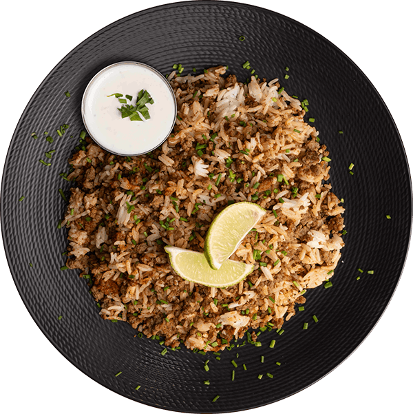 Lean Ground Bison, Jasmine Rice, Orange Bell Pepper, Lime, Onion, Smoked Paprika, Sea Salt, Avocado Oil,