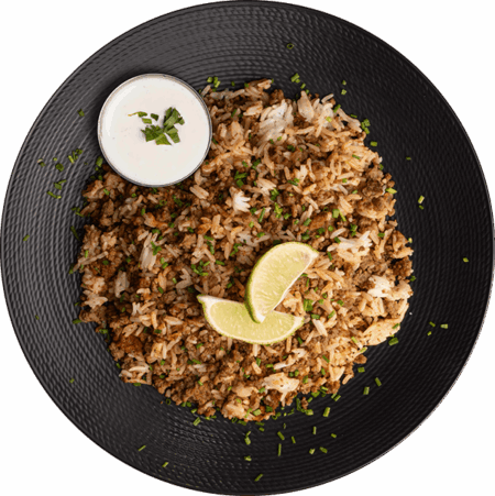 One of our highest-protein meals ever. 6oz premium grass-fed bison and jasmine rice seasoned with a smoky paprika seasoning, fresh lime, and a side of creamy chive sauce.