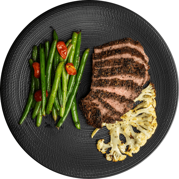 Simple and wholesome: Grilled Black Angus Steak and cauliflower paired perfectly with a flavorful green bean mix.